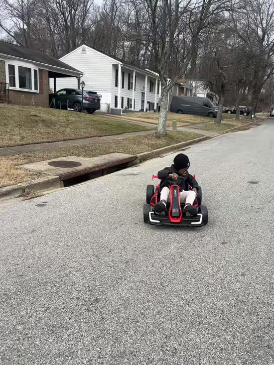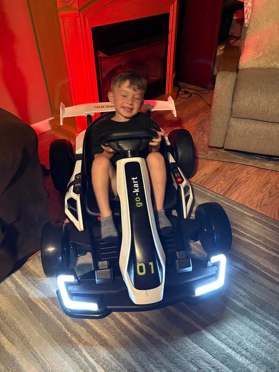 The go-kart is equipped with a slow start feature to prevent sudden acceleration. It also has a sturdy frame and adjustable speed settings for added safety.