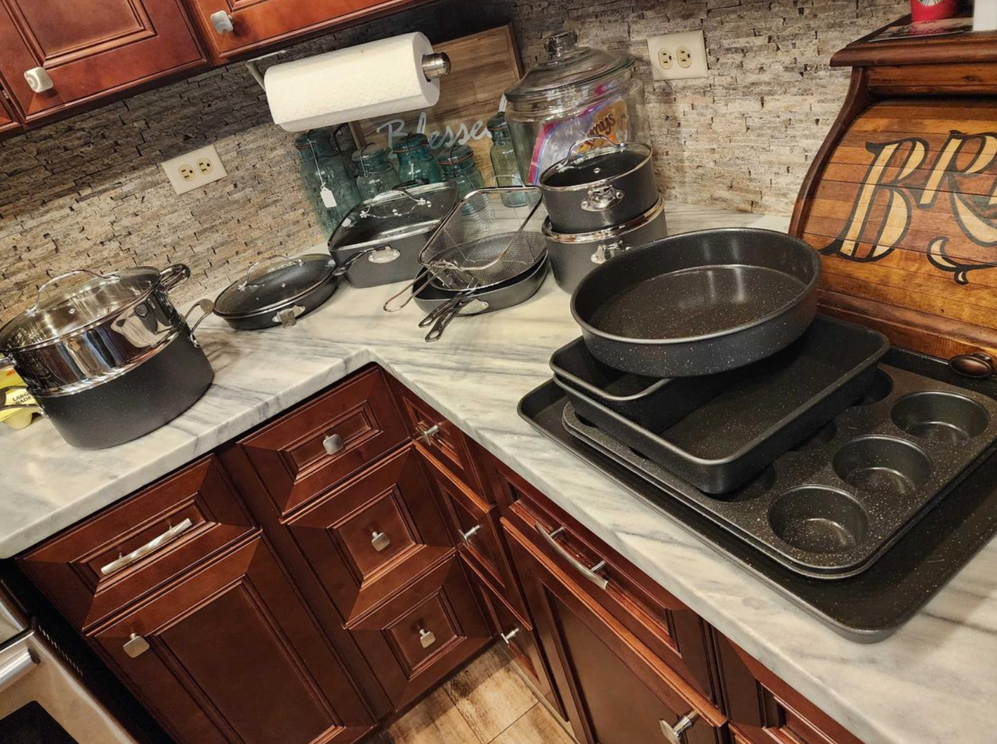 The triple-layered granite coating is thicker than most pans, extremely durable, and resists scratches like no other non-stick pan in the market. Pressed from a single piece of aluminum provides even heat distribution throughout each of our pans. Stay cool handles make stovetop cooking a breeze.