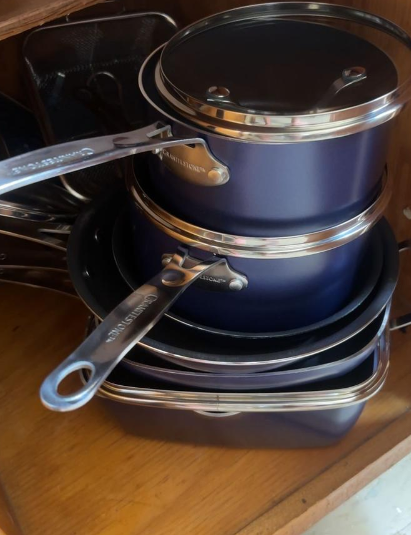 These pots and pans and accessories or wonderful. Clean up is easy . This is my favorite color and the pots and pans are just the right size.